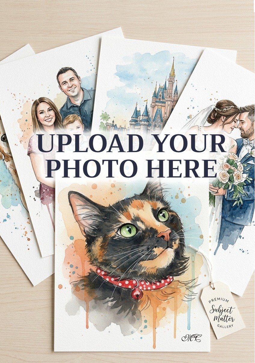 Soft, transparent washes and gentle brush strokes recreate your photo with a painterly charm. The result is a piece with subtle colour gradients, soft edges, and a sense of movement that brings memories to life on textured paper — like a fine piece of gallery art.